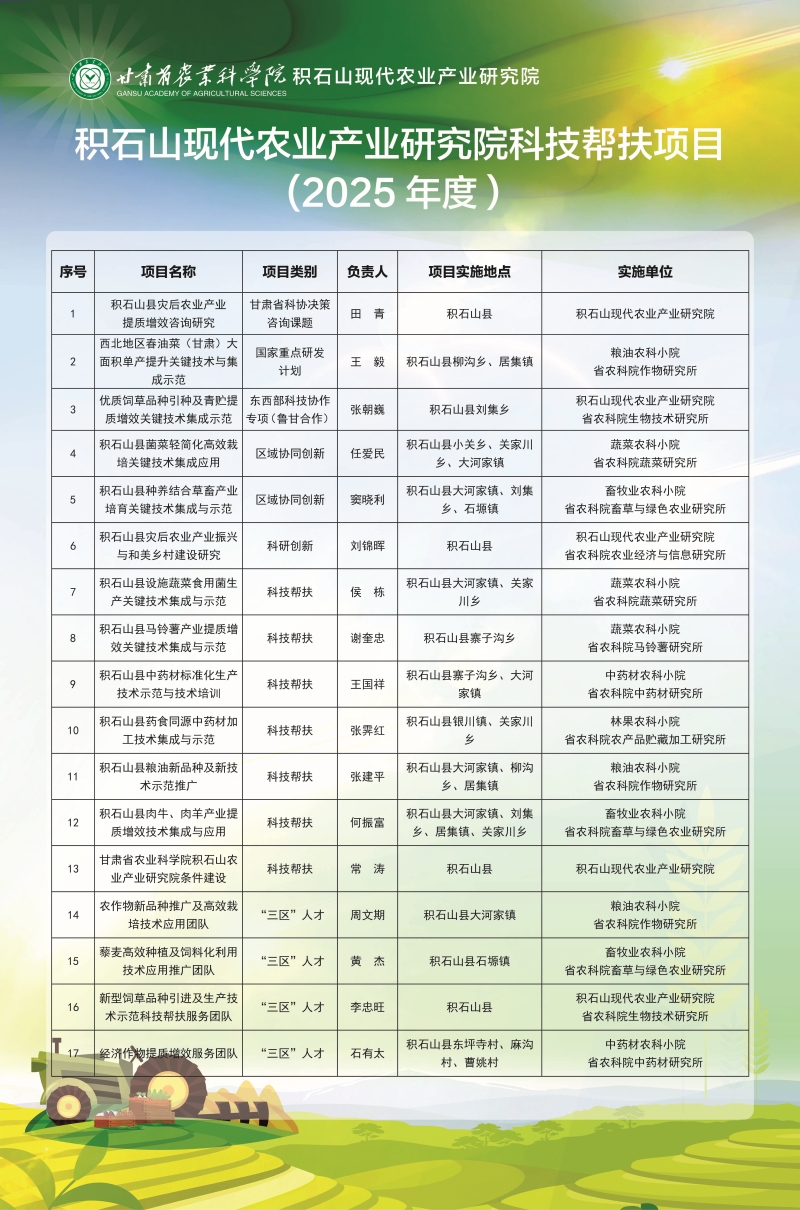 积石山现代农业产业研究院科技帮扶项目(2025年度)